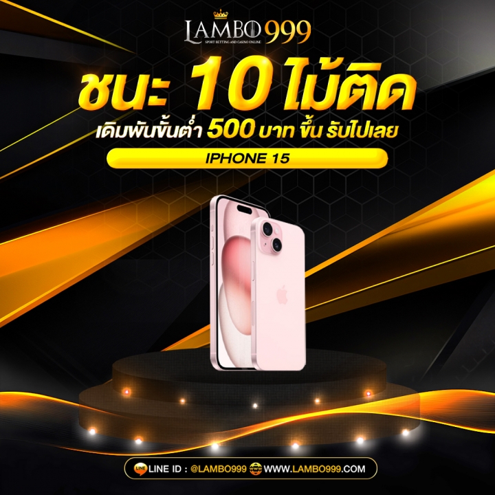 โปรโมชั่นเดิมพันบาคาร่า ชนะ/แพ้ 10 ตาติด รับไปเลย " iPhone 15 " สมาชิกเดิมพันขั้นต่ํา 500 บาท/ตา ชนะ หรือแพ้ 10 ตาติดต่อกัน หากเสมอเริ่มนับใหม่ (เดิมพันฝั่ง Banker หรือ Player ในเกม คาสิโน รับได้ 1 ครั้ง/คน เท่านั้น