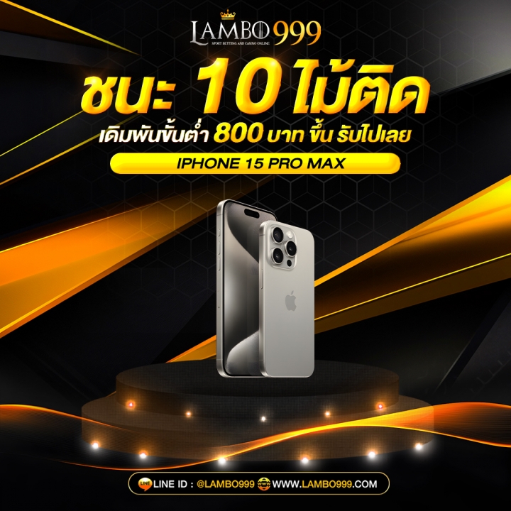 โปรโมชั่นเดิมพันบาคาร่า ชนะ/แพ้ 10 ตาติด รับไปเลย " iPhone 15 Pro max " สมาชิกเดิมพันขั้นต่ํา 800 บาท/ตา ชนะ หรือแพ้ 11 ตาติดต่อกัน หากเสมอเริ่มนับใหม่ (เดิมพันฝั่ง Banker หรือ Player ในเกม คาสิโน รับได้ 1 ครั้ง/คน เท่านั้น
