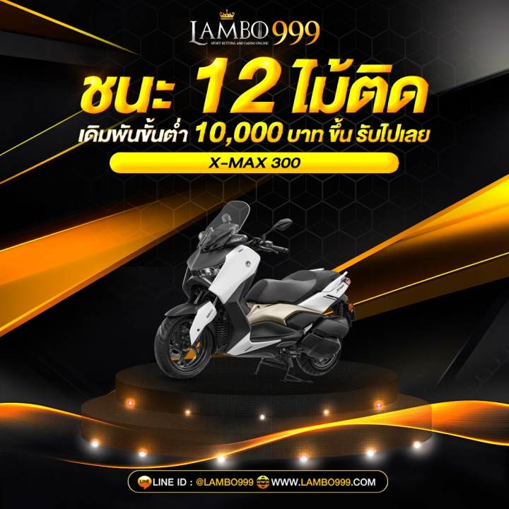 โปรโมชั่นเดิมพันบาคาร่า ชนะ/แพ้ 12 ตาติด รับไปเลย “ x-max 300 ” สมาชิกเดิมพันขั้นต่ำ 10,000 บาท/ตา ชนะ หรือแพ้ 12 ตาติดต่อกัน หากเสมอเริ่มนับใหม่ (เดิมพันฝั่ง Banker หรือ Player ในเกม คาสิโน รับได้ 1 ครั้ง/คน เท่านั้น