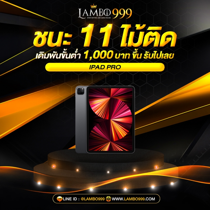โปรโมชั่นเดิมพันบาคาร่า ชนะ/แพ้ 11 ตาติด รับไปเลย " iPad Pro " สมาชิกเดิมพันขั้นต่ํา 1,000 บาท/ตา ชนะ หรือแพ้ 11 ตาติดต่อกัน หากเสมอเริ่มนับใหม่ (เดิมพันฝั่ง Banker หรือ Player ในเกม คาสิโน รับได้ 1 ครั้ง/คน เท่านั้น