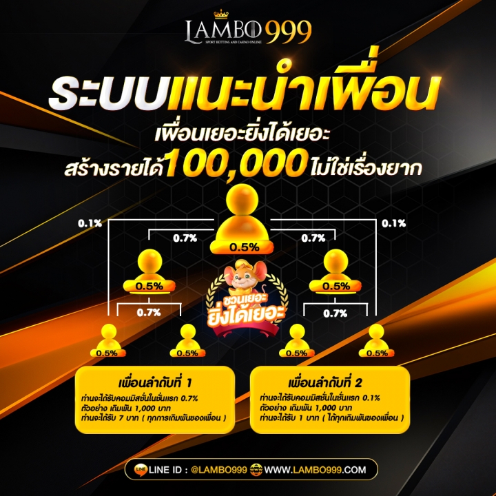 - หากเพื่อนลำดับที่1 แนะนำเพื่อนมาสมัคร คุณพี่จะได้รับค่าคอมมิชชั่น 0.1% จากเพื่อนลำดับที่2