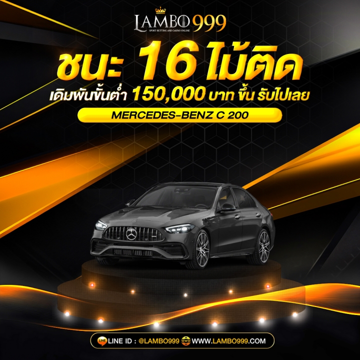 โปรโมชั่นเดิมพันบาคาร่า ชนะ/แพ้ 16 ตาติด รับไปเลย “ MERCCEDES-BENZ C 200 ” สมาชิกเดิมพันขั้นต่ำ 150,000 บาท/ตา ชนะ หรือแพ้ 16 ตาติดต่อกัน หากเสมอเริ่มนับใหม่ (เดิมพันฝั่ง Banker หรือ Player ในเกม คาสิโน รับได้ 1 ครั้ง/คน เท่านั้น